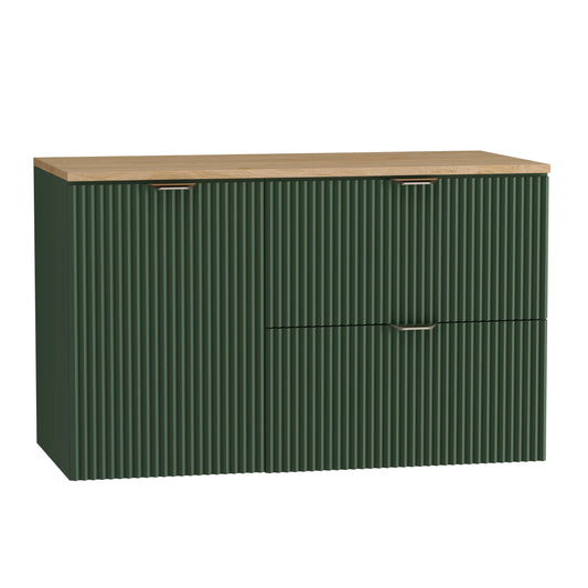 Waschtischunterschrank 100 cm mit Wäschekorb Willy - Salbei, Walnussplatte