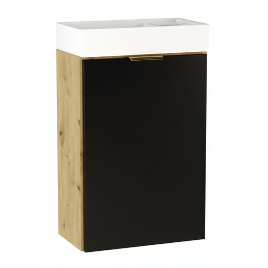 Waschtischunterschrank 40 cm mit Waschbecken Orio - Schwarz/Eiche Artisan