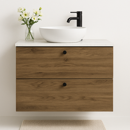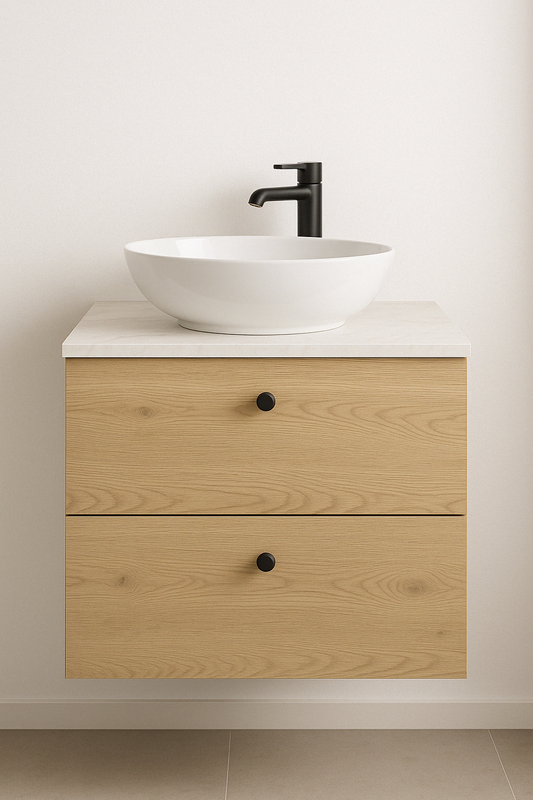 Waschtischunterschrank 60 cm, glatte Fronten Beti - Eiche Cremona/Marmur Bianco