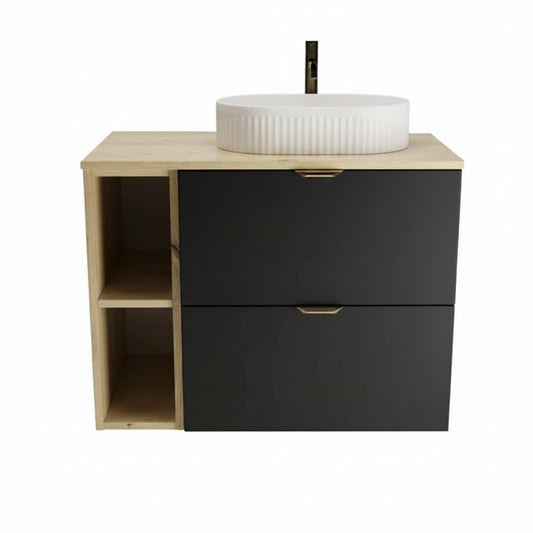 Badmöbel-Set: 80 cm Waschtischunterschrank mit Waschbecken Orio - Schwarz/Eiche artisan