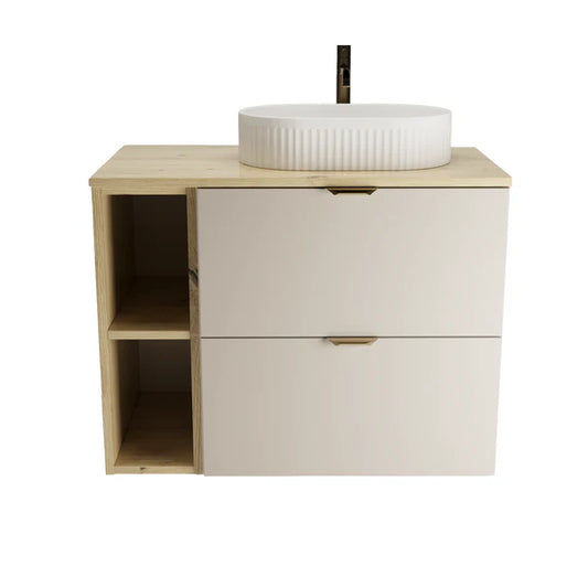 Badmöbel-Set: 80 cm Waschtischunterschrank mit Waschbecken Orio - Kaschmir/Eiche artisan