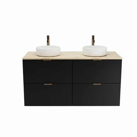 Badmöbel-Set: 120 cm Waschtischunterschrank mit 4 Schubladen und 2 Waschbecken Orio - Schwarz/Eiche Artisan