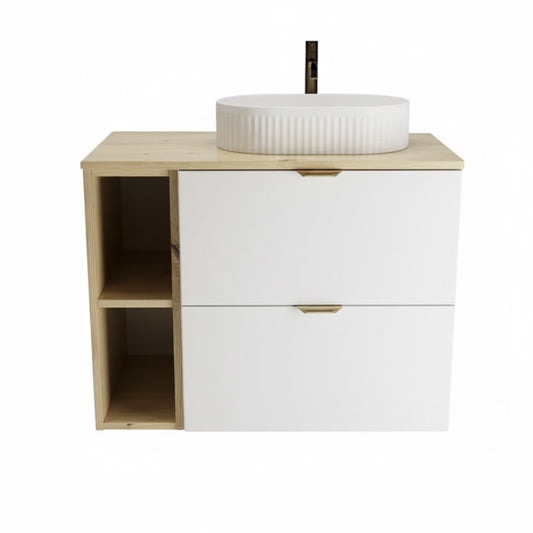 Badmöbel-Set: 80 cm Waschtischunterschrank mit Waschbecken Orio - Weiß/Eiche Artisan