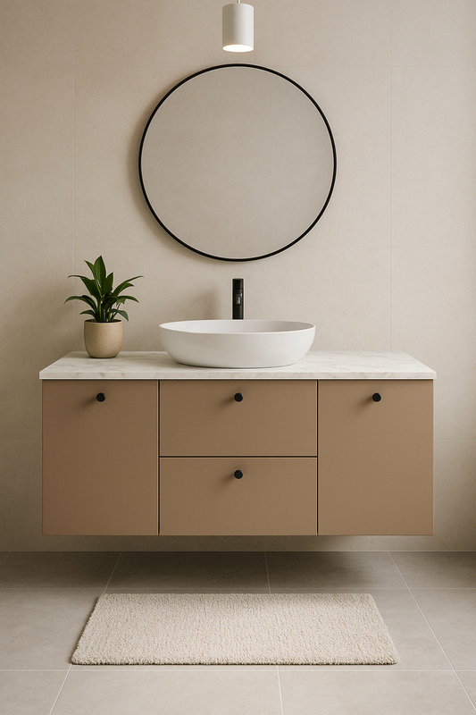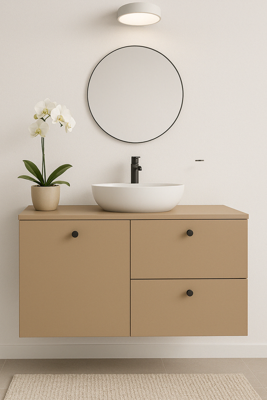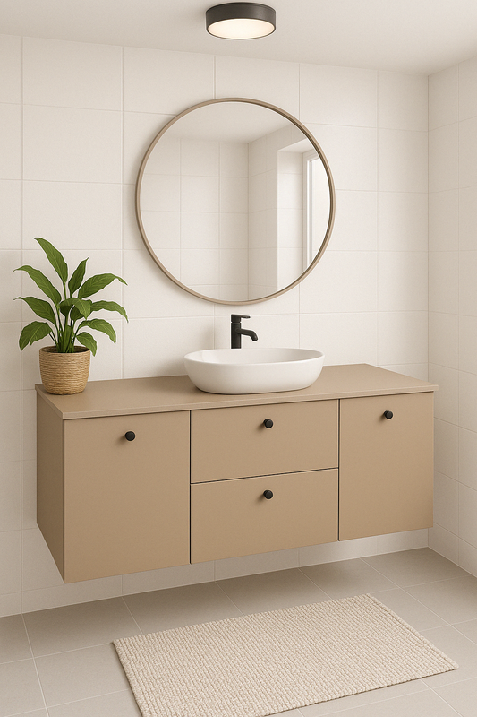 Hergestellt aus 18 mm starkem, laminiertem Holzwerkstoff, bieten die Möbel eine hohe Feuchtigkeitsbeständigkeit und Langlebigkeit, die für langanhaltende Qualität sorgt. Die Farbe Cappuccino verleiht Ihrem Badezimmer eine warme, beruhigende Ausstrahlung und schafft eine harmonische Atmosphäre.