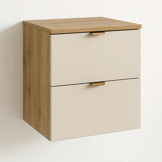 Badmöbel-Set: 60 cm Schrank mit 2 Schubladen Orio - Kaschmir/Eiche artisan