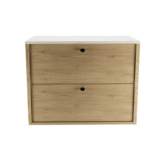 Waschtischunterschrank 80 cm, glatte Fronten Belino - Eiche Cremona/Marmor Bianco