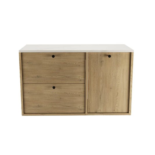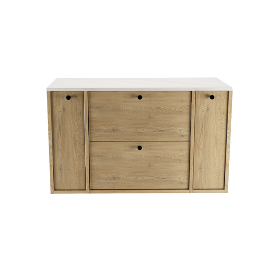 Waschtischunterschrank 100 cm mit 2 Regal, glatte Fronten Belino - Eiche Cremona/Marmor Bianco