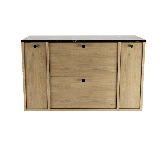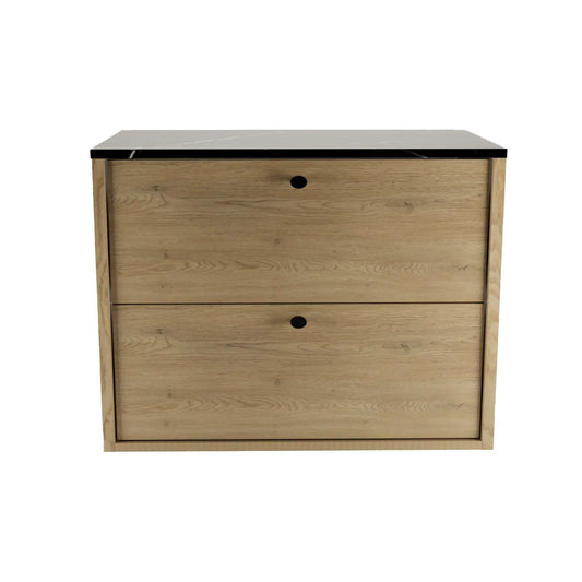Waschtischunterschrank 80 cm, glatte Fronten Belino - Eiche Cremona/Marmor Schwarz