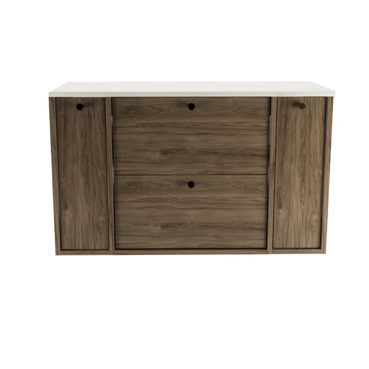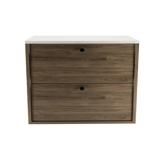 Waschtischunterschrank 80 cm, glatte Fronten Belino - Walnuss Dunkel/Marmor Bianco