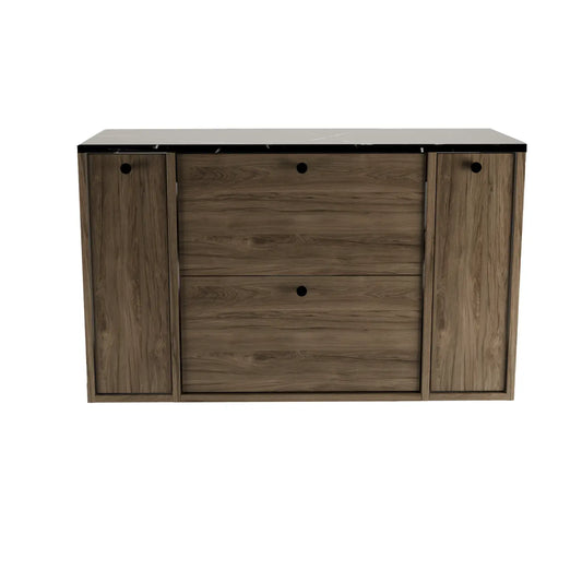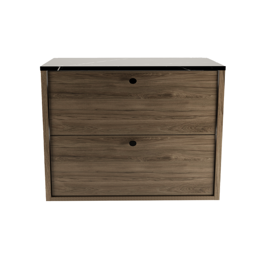 Waschtischunterschrank 80 cm, glatte Fronten Belino - Walnuss Dunkel/Marmor Schwarz
