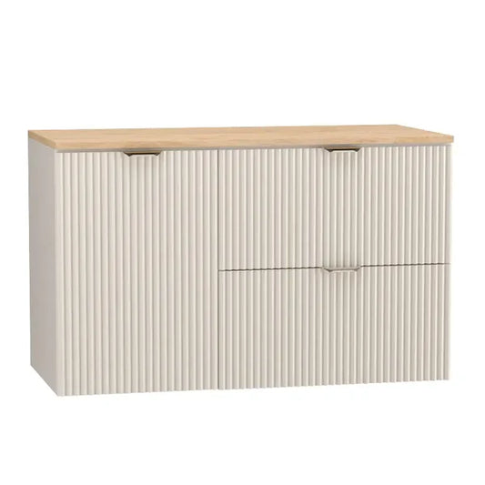 Die Badezimmermöbelkollektion Willy ist die ideale Wahl für alle, die moderne Eleganz in einer warmen, subtilen Kaschmir-Farbpalette schätzen. Ein charakteristisches Merkmal dieser Kollektion sind die geriffelten Fronten, die dem Raum Tiefe und Stil verleihen und das Badezimmer mit einem einzigartigen Charakter versehen. Diese Fronten, kombiniert mit zarten Metallgriffen, schaffen eine ästhetische Komposition, die sich perfekt in verschiedene Stilrichtungen einfügt – von modernen bis hin zu klassischeren Arrangements.