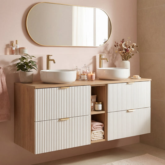 Badezimmer Hängeschrank 60 cm mit geriffelte Front Willy für Geberit - Weiß