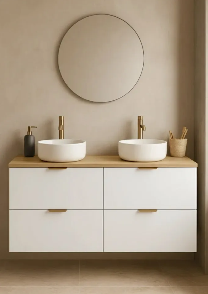 Das Badmöbel-Set Orio vereint modernes Design, hohe Funktionalität und großzügigen Stauraum und ist die ideale Lösung für mittelgroße bis große Badezimmer sowie Familienbäder. Mit einer Breite von 120 cm und zwei Waschplätzen bietet das Set komfortable Nutzung für zwei Personen gleichzeitig.