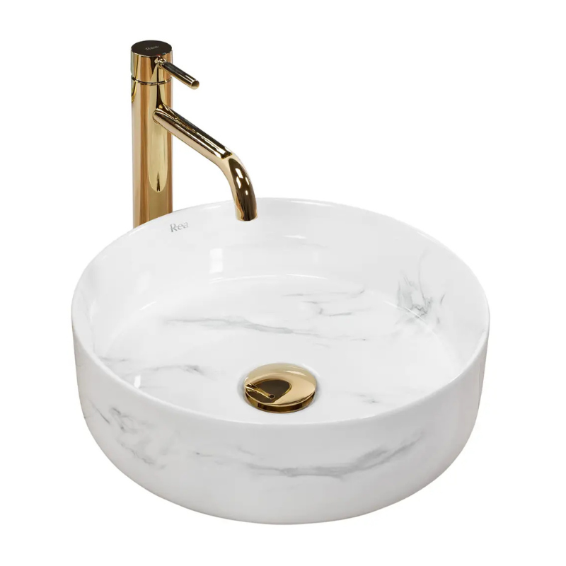 Das runde Waschbecken Sami aus weißem Marmor mit einem Durchmesser von 36 cm bietet eine elegante und funktionale Lösung für kleine und moderne Badezimmer. Hergestellt aus hochwertiger Sanitärkeramik, vereint dieses stilvolle Waschbecken Ästhetik, Langlebigkeit und pflegeleichte Oberfläche, wodurch es sich ideal in jede Badezimmergestaltung einfügt.