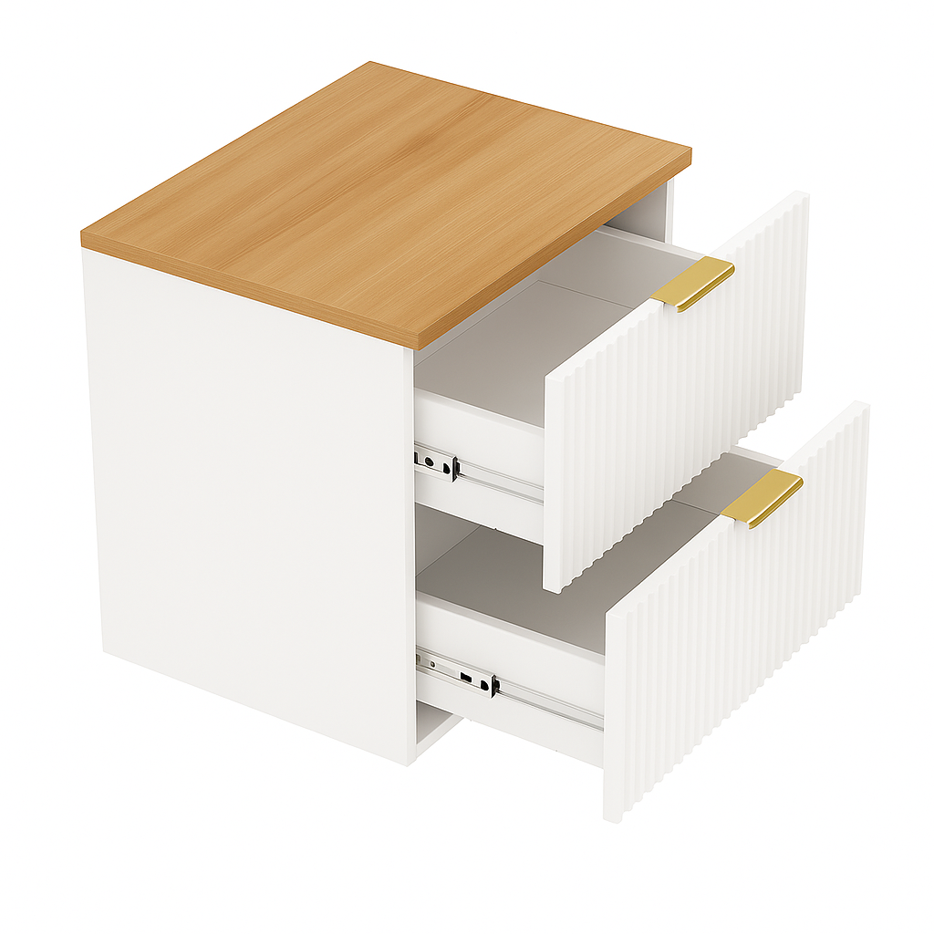 - Elegante Farbgebung: Der weiße Korpus und die Walnussplatte bilden einen modernen, zeitlosen Kontrast, der zu jeder Badezimmereinrichtung passt.