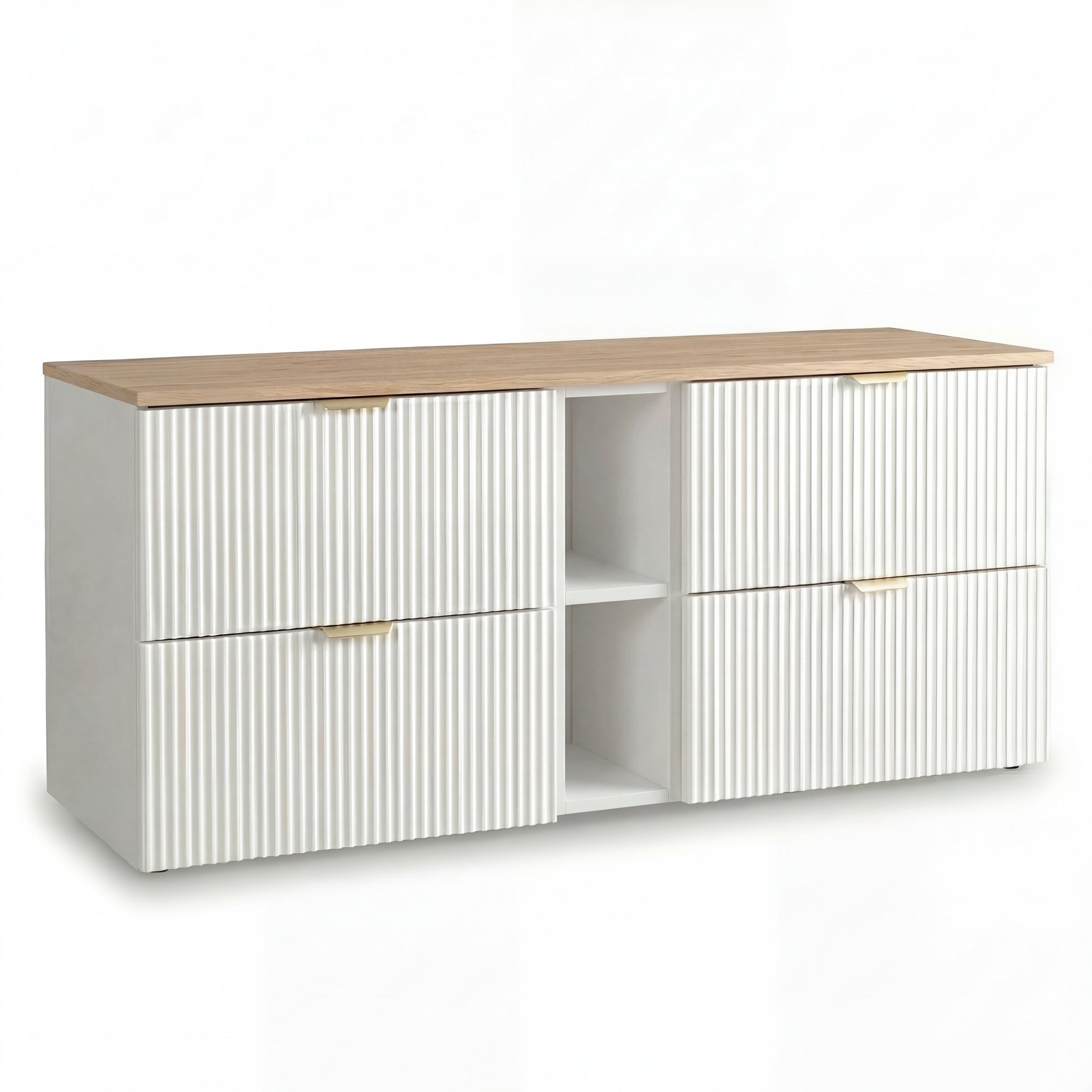 Waschtischunterschrank 140 cm Willy - Weiß, Walnussplatte | Styl und Funktionalität für Ihr Badezimmer