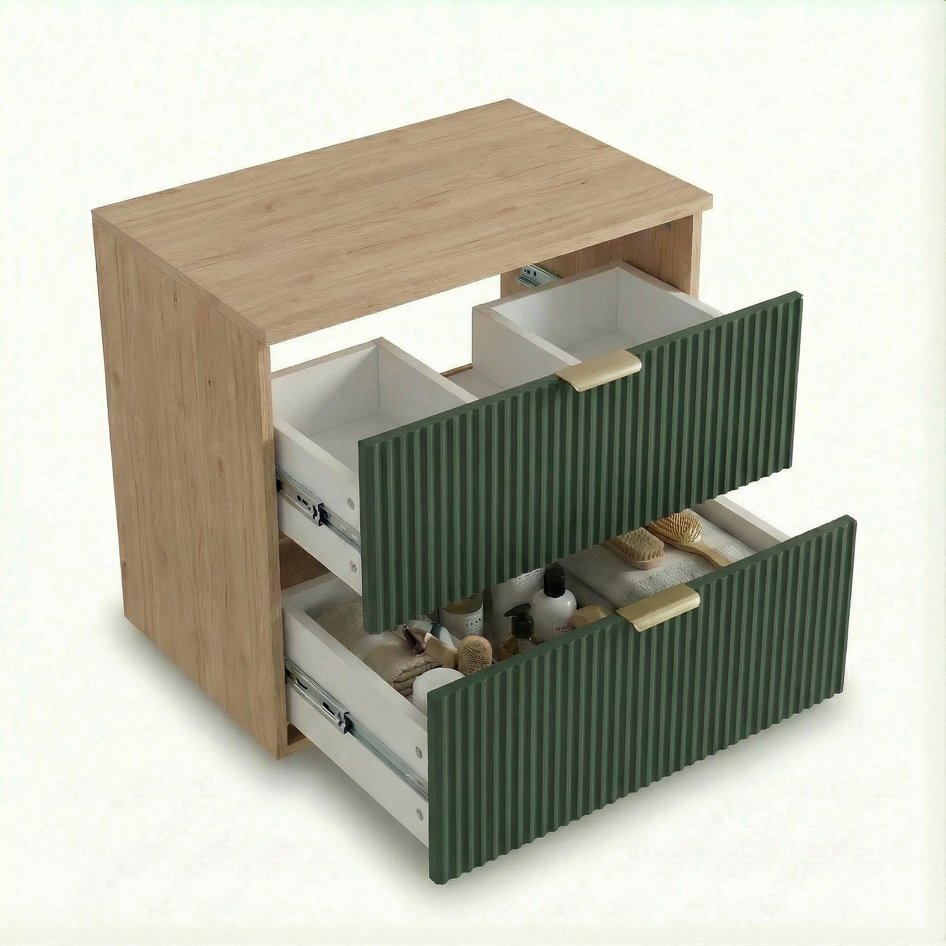 Moderner Waschtischunterschrank für Ihr Badezimmer – Set Willy 100 cm in Salbei/Walnuss