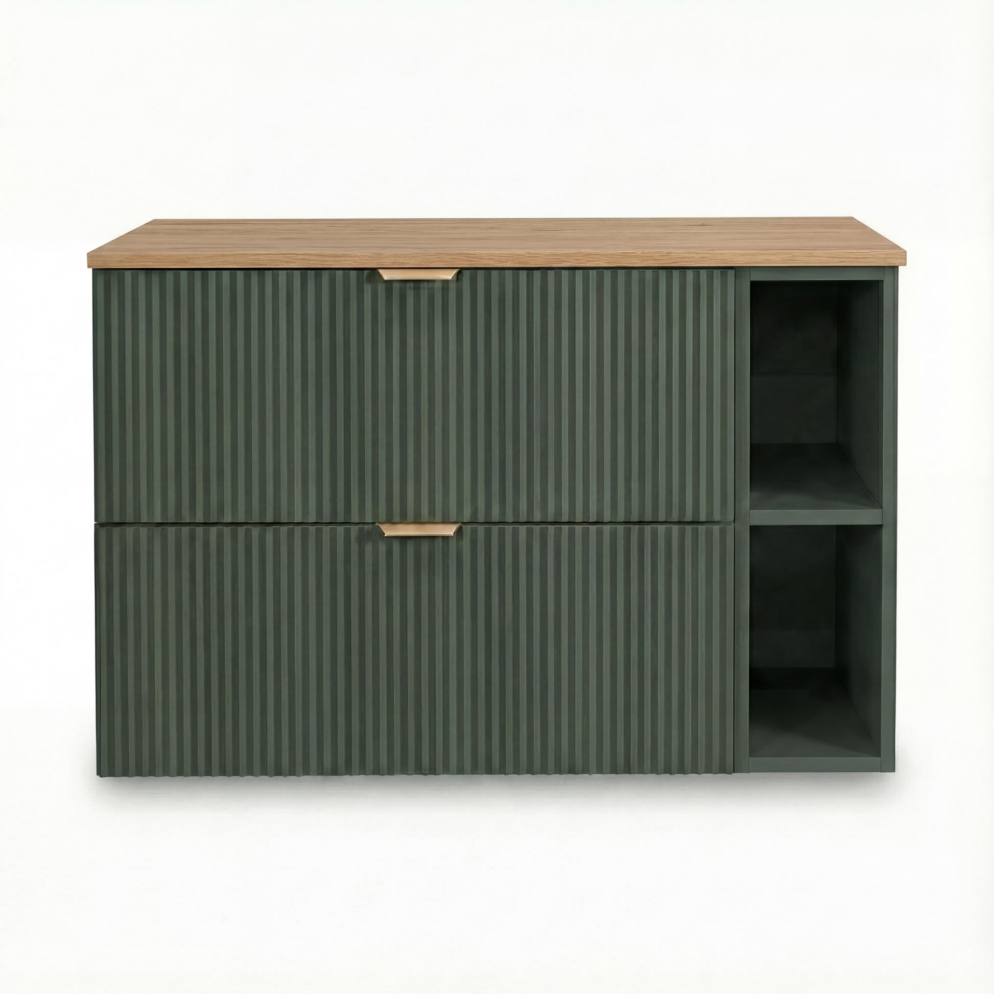 Waschtischunterschrank 100 cm Willy - Salbei, Walnussplatte | Elegantes Badezimmermöbel mit viel Stauraum