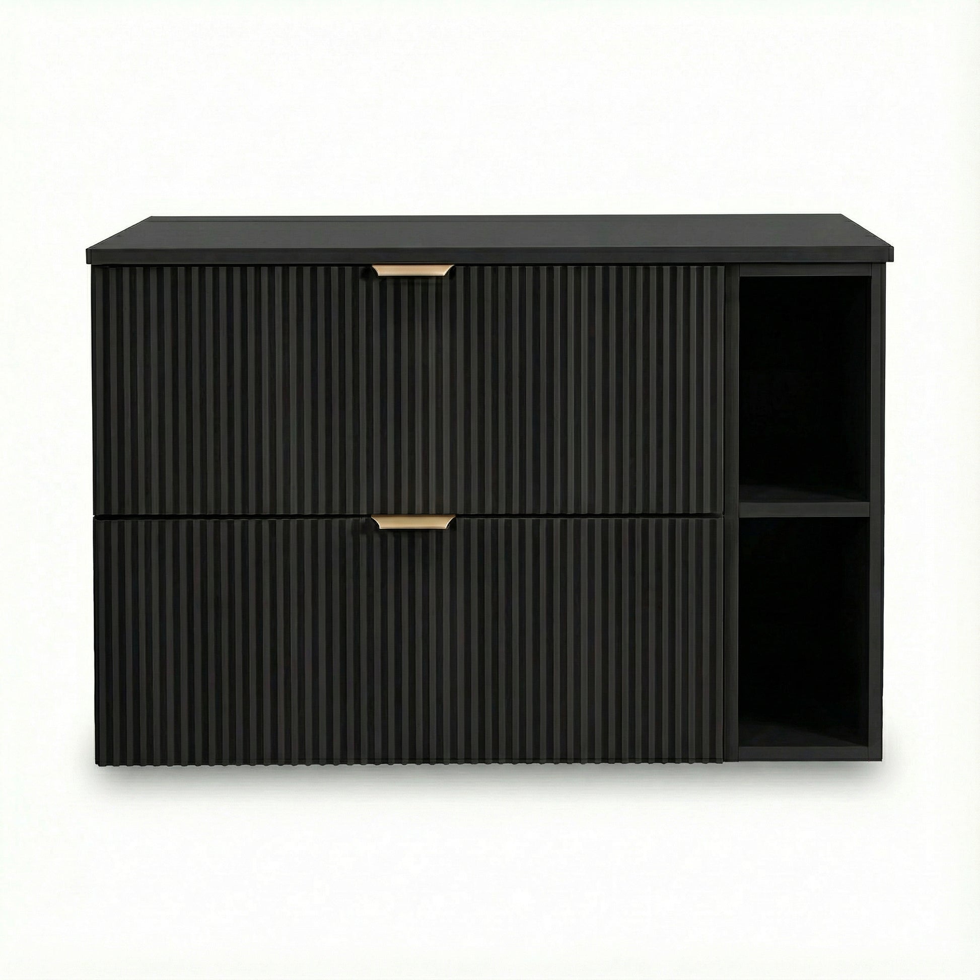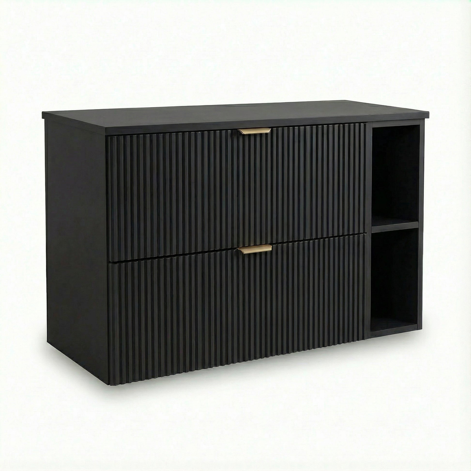 Waschtischunterschrank 100 cm Willy- Schwarz | Elegantes Design mit geriffelten Fronten für Ihr Badezimmer