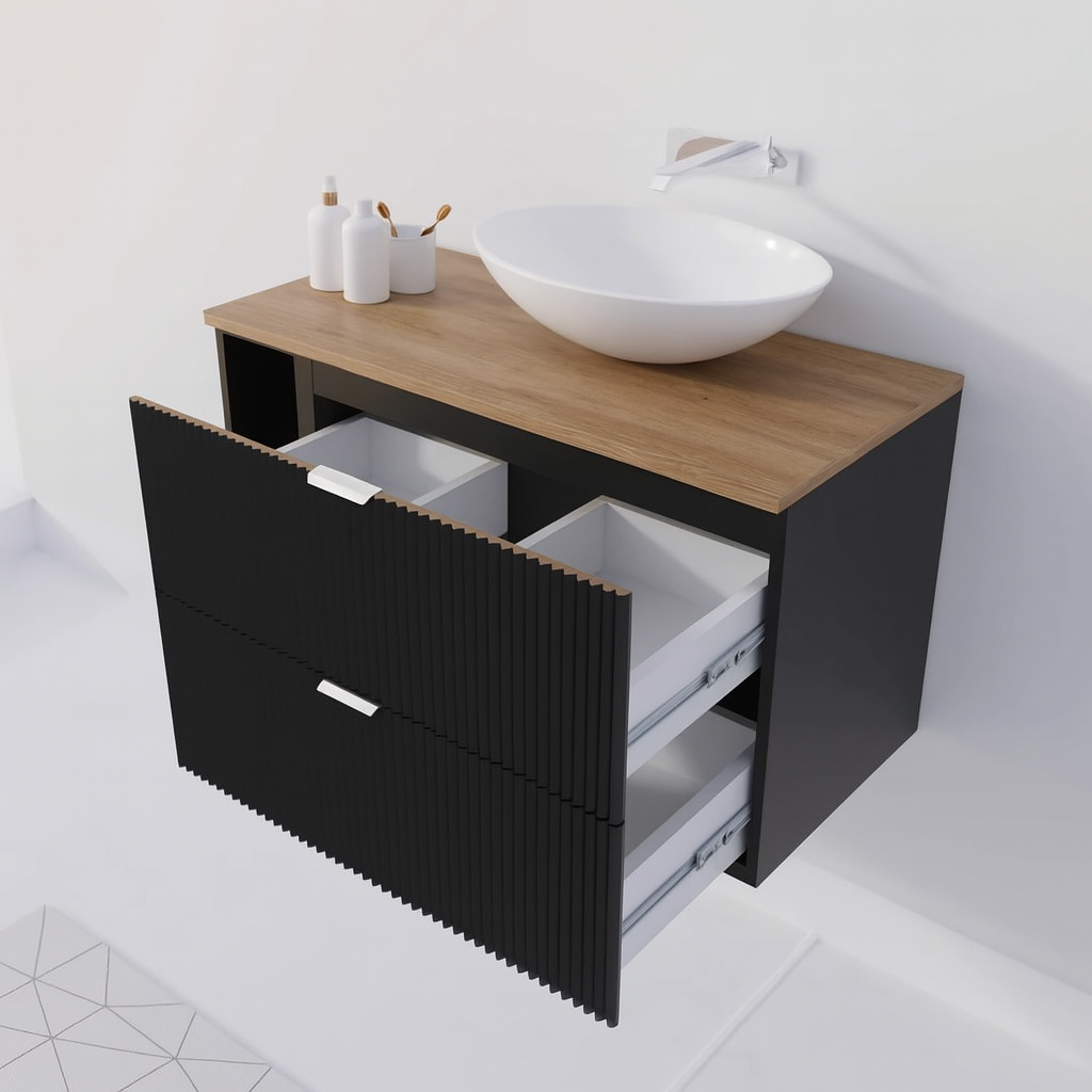 Waschtischunterschrank 100 cm Willy- Schwarz, Walnussplatte | Modernes Badezimmermöbel mit elegantem Design