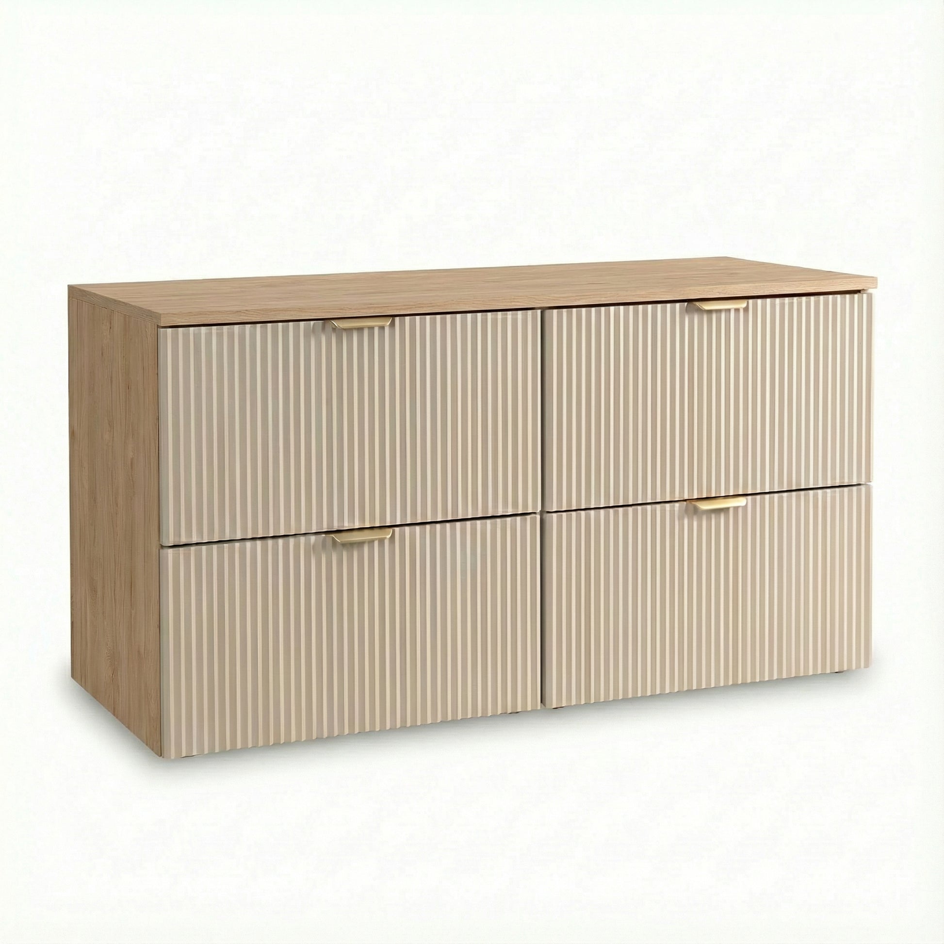 Waschtischunterschrank 120 cm Willy - Kaschmir/Walnuss | Geriffelte Fronten für modernes Badezimmerdesign
