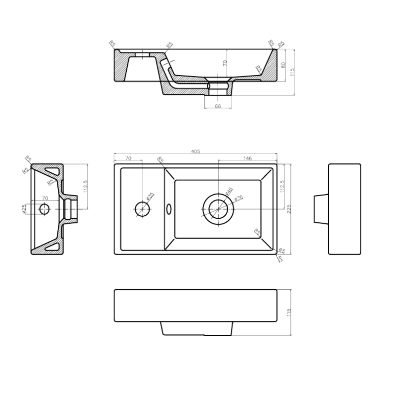 Maße Waschbecken (B/T/H): 40,5 x 22,5 x 8 cm