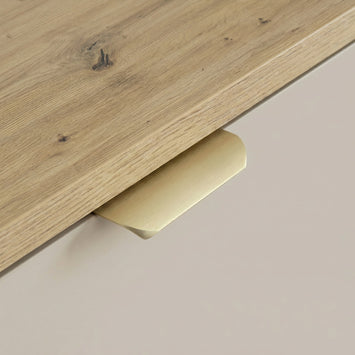 Der Waschtischunterschrank Orio kombiniert elegante Kaschmir-Fronten mit warmen Eiche Artisan-Seiten und bietet so eine harmonische Verbindung aus modernem Stil und natürlicher Ausstrahlung. Mit einer Breite von 60 cm ist er optimal für Badezimmer, die auf praktische Aufbewahrung und Design Wert legen.