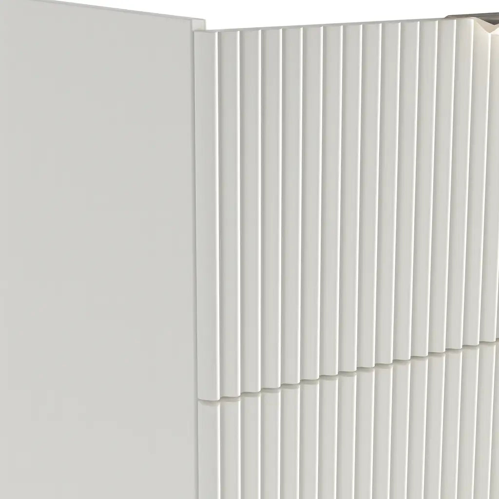 Ausgestattet mit zwei geräumigen Schubladen mit SOFT-CLOSE-System, sorgt der Unterschrank für geräuschloses und komfortables Schließen. Die gerillten Fronten verleihen dem Möbelstück eine exklusive Optik und folgen den aktuellen Interior-Trends.