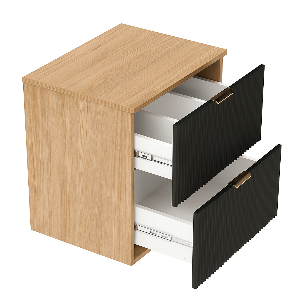 Der Waschtischunterschrank 60 cm Willy - Schwarz/Walnuss überzeugt mit einem eleganten schwarzen Farbton auf den Fronten und einem Korpus in warmem Walnuss-Farbton. Diese raffinierte Farbkombination bringt einen Hauch von Luxus und Natürlichkeit in Ihr Badezimmer und schafft eine zeitlose, moderne Atmosphäre.