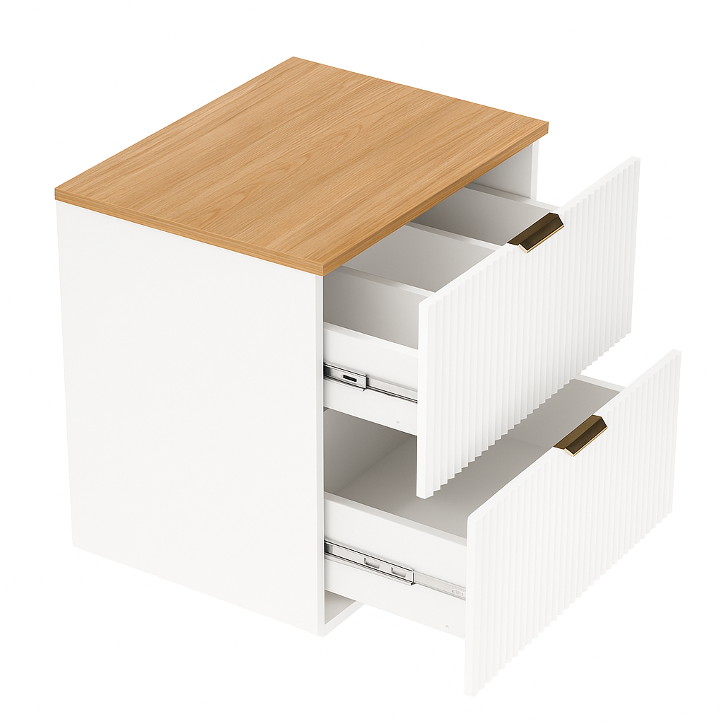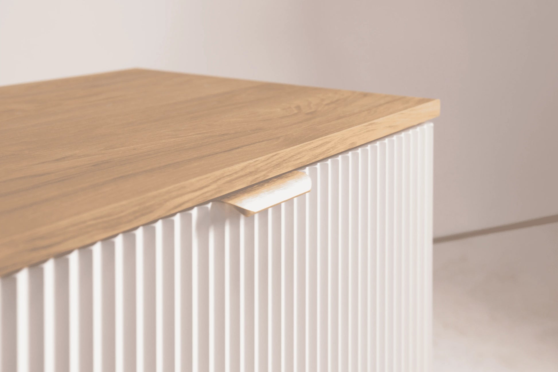 - Geriffelte Fronten: Ein stilvolles Detail, das dem Schrank eine besondere Textur verleiht.