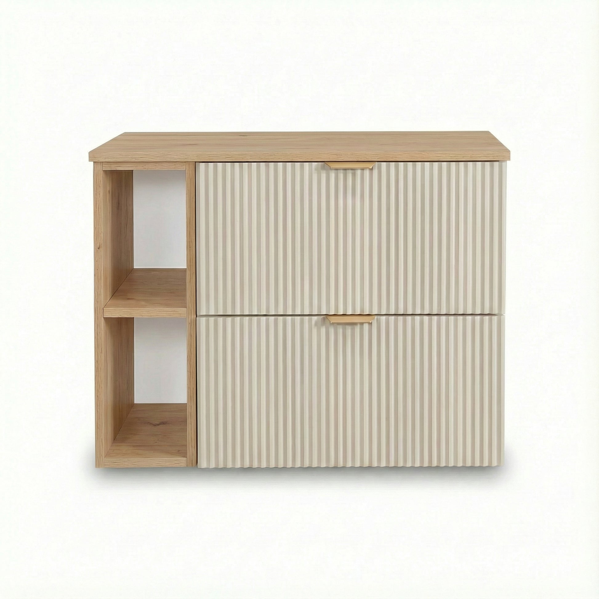 Waschtischunterschrank 80 cm mit Regal Willy - Kaschmir/Walnuss | Elegantes Farbenspiel mit geriffelten Fronten